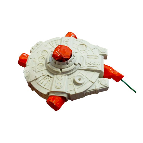Journey to a galaxy far, far away with this spinning plastic novelty. The engines scream with red, green, and gold sparks.